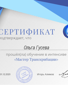 С большой радостью сделаю транскрибацию ваших вебинаров и превращу их в классный контент, который Вы сможете постоянно публиковать у себя на сайте, на блоге. Вы навсегда забудете о том, что нужно где-то, как-то придумывать контент, я сниму с вас огромное количество головной боли. Если Вам интересна эта идея, то давайте пообщаемся персонально и всё обсудим. Согласна на тестовую работу.